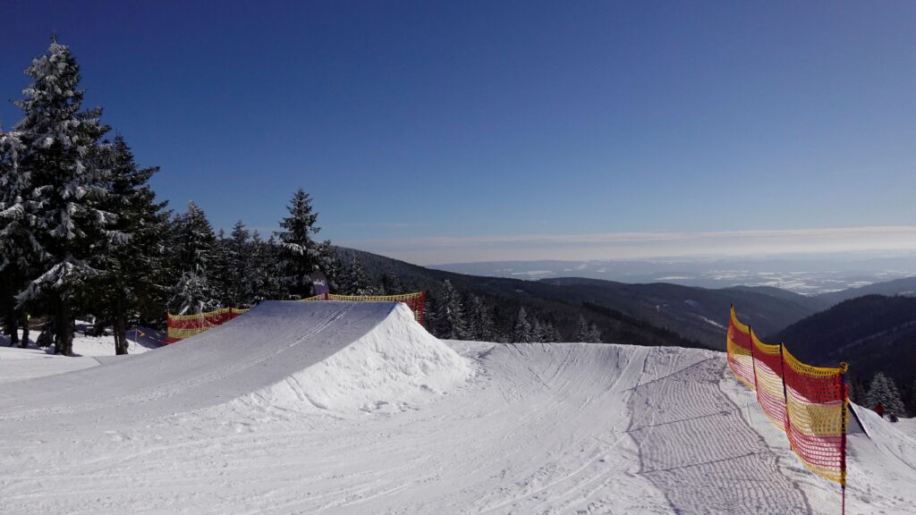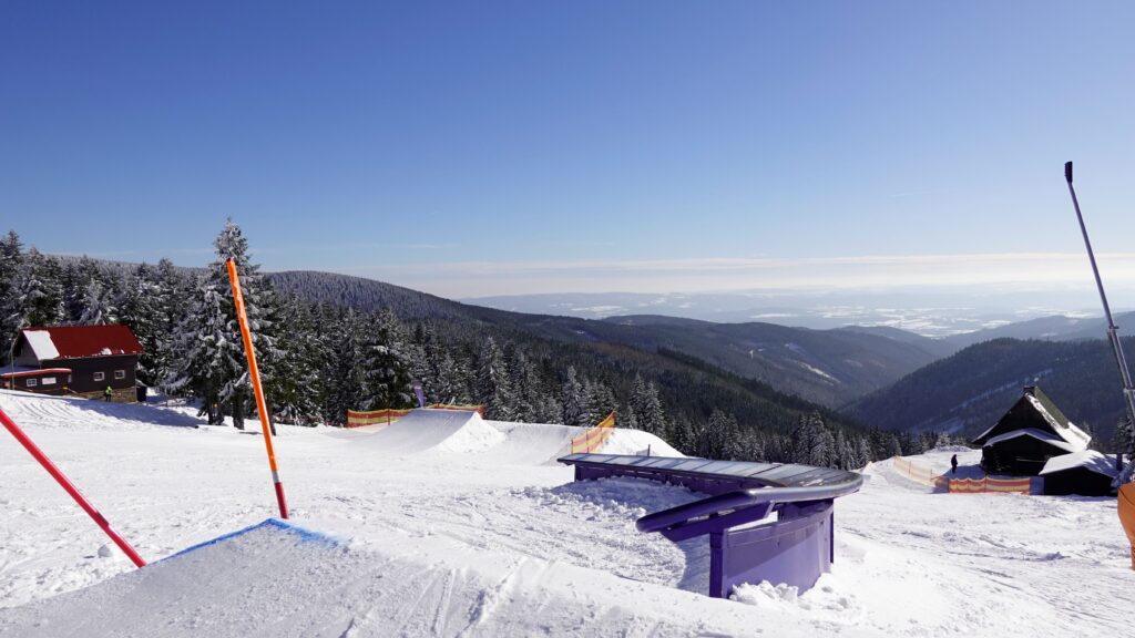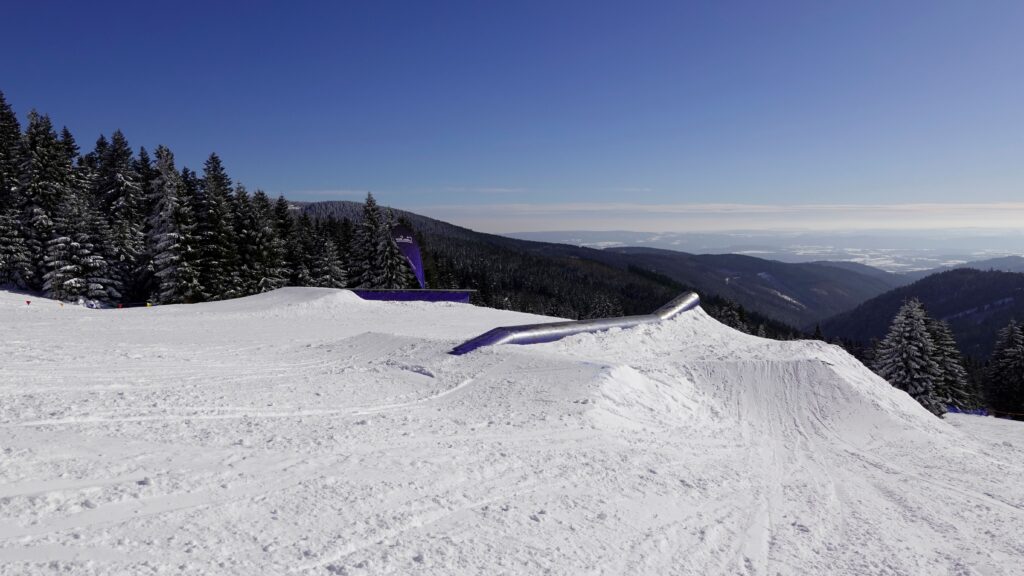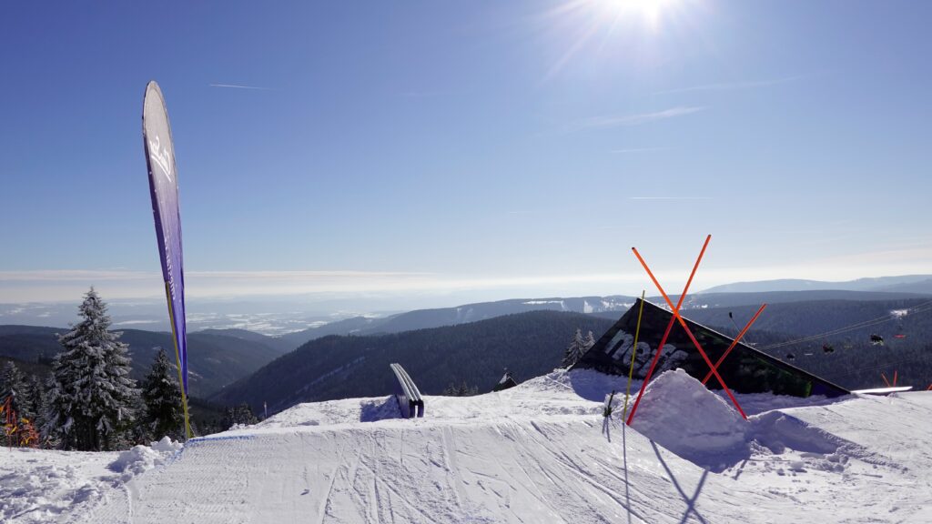 Ani snowpark na severní straně Klínovce není na freestyle scéně žádným nováčkem. Svého času jsme stavěli U rampu kategorie Super Pipe (hloubka 5,2m) a v ní pořádali několik velkých mezinárodních klání.