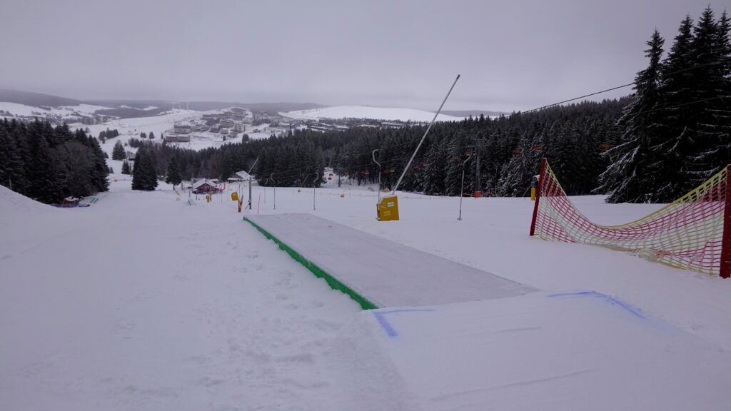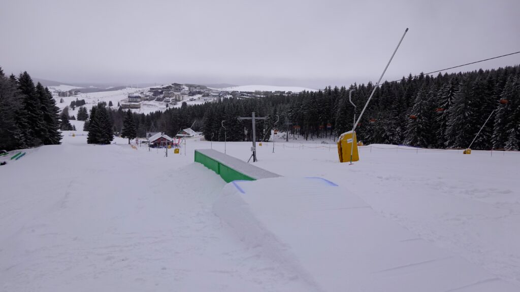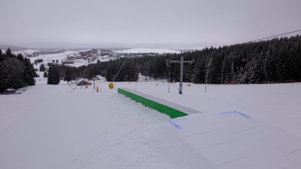 – tradiční freestyle zóna na Neklidu, 5 platforem ve dvojí obtížnosti skoků (M/L) a railů